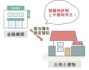 融資実行の際には、同時に金融機関が土地と建物に抵当権を設定登記します。この登記の際にかかるのが、登録免許税という税金です。税額は借入額に一定の税率をかけて計算されます。税率は0.4%ですが、以下の条件を満たすと0.1%に軽減されます。