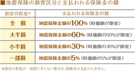 地震保険の保険金額の支払われ方