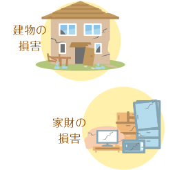 地震保険は、地震・噴火またはこれらによる津波を原因として、自宅建物と家財が被った損害(火災・損壊・埋没・流失)を補償する保険です。地震災害による被災者の生活の安定に寄与することが目的です。