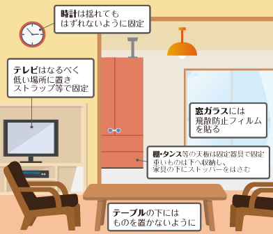 地震保険で備えることに合わせて、日頃からの備えも大切です。災害時に心配なのは家族の安否です。家族との連絡方法や集合場所の確認、避難先の確認を共有しておきましょう。近年発生した地震では、ケガをした人の約半数が家具類の転倒、落下、移動が原因でした。家具や電化製品をしっかり固定すること。ベッドやソファとの位置関係や、出口を塞がないような配置も重要です。古いマンションの場合は耐震診断を受けることもよいでしょう。マンションの管理組合での取り組みなども是非確認し、管理組合の活動にも積極的に参加してください。「備えあれば憂いなし」です。自分と家族の豊かな暮らしのために、我が家の“まさか”に備えましょう。