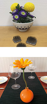 食卓の花を生ける際には、ボリューム感を抑えたアレンジを心がけて。卓上のスペースをあまり取らないアレンジメントがおすすめです。 花の形がくずれないようにしっかり生けるには、オアシスや剣山(けんざん)を器に入れます。また、ポプリポットを利用しても。どちらも100円均一ショップで手に入ります。