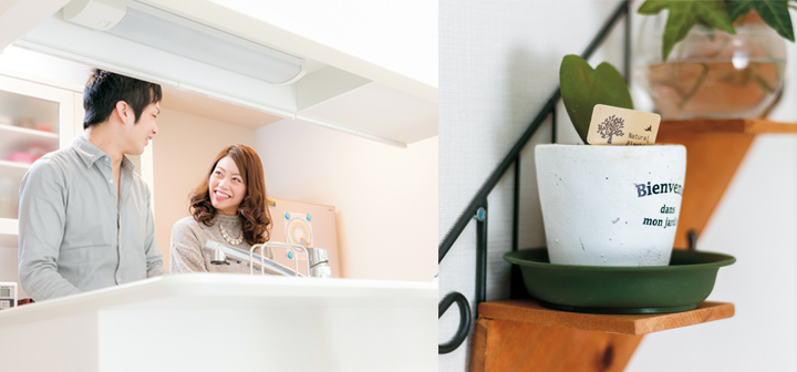 お二人とも料理をされるということで、キッチンの使いやすさにも注目されていました。「収納が多くて食器棚が要らないくらいです。あと、包丁収納にストッパーが付いているので子どもが触っても安全ですね」「キッチンスペースは大人が二人並んでもゆとりがあります。子どもが大きくなったら一緒にお菓子づくりをしてみたいです」と新しい夢についてお話しくださいました。