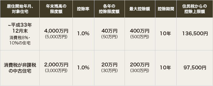 前項のとおり「住宅ローン減税」は、年末の借入残高の1%が所得税と住民税から還付される仕組みです。控除対象となる住宅ローンの借入残高には上限があり、消費税が8%に引き上げられたタイミングで拡大されました。控除対象となる年末借入残高の限度額は一般の住宅で4000万円。長期優良住宅等の場合は5000万円です。