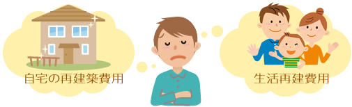 「地震保険に関する法律」では地震保険の目的を「地震等による被災者の生活の安定に寄与すること」と定めています。「Point4」のとおり、地震保険の保険金額は、最大で火災保険金額の50%です。火災保険の保険金額が2,000万円であれば、地震保険で支払われるのは、全損で1,000万円、大半損で600万円。自宅の再建築費用と一定期間における生活再建費用を充分に満たすには厳しい状況と言えるのではないでしょうか。